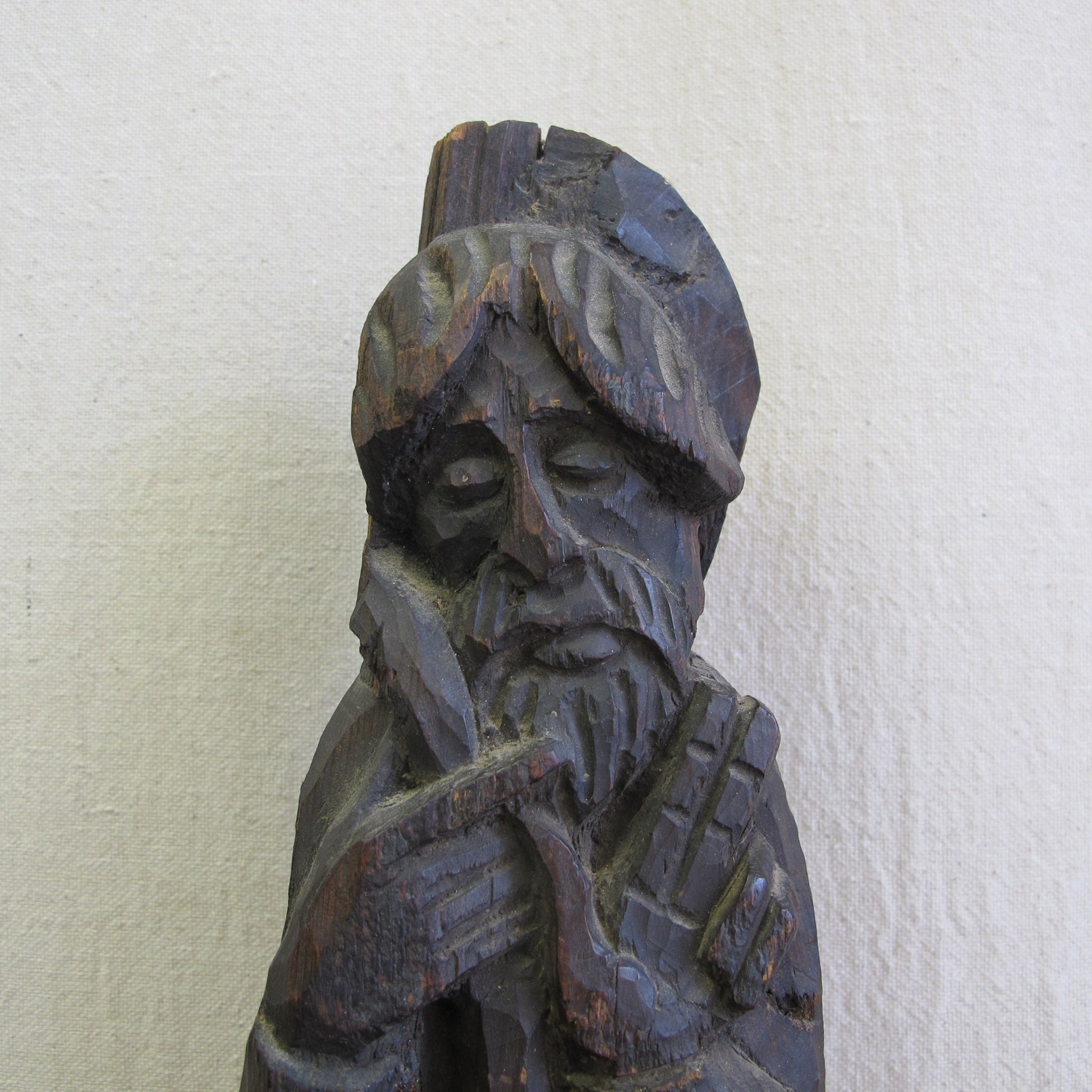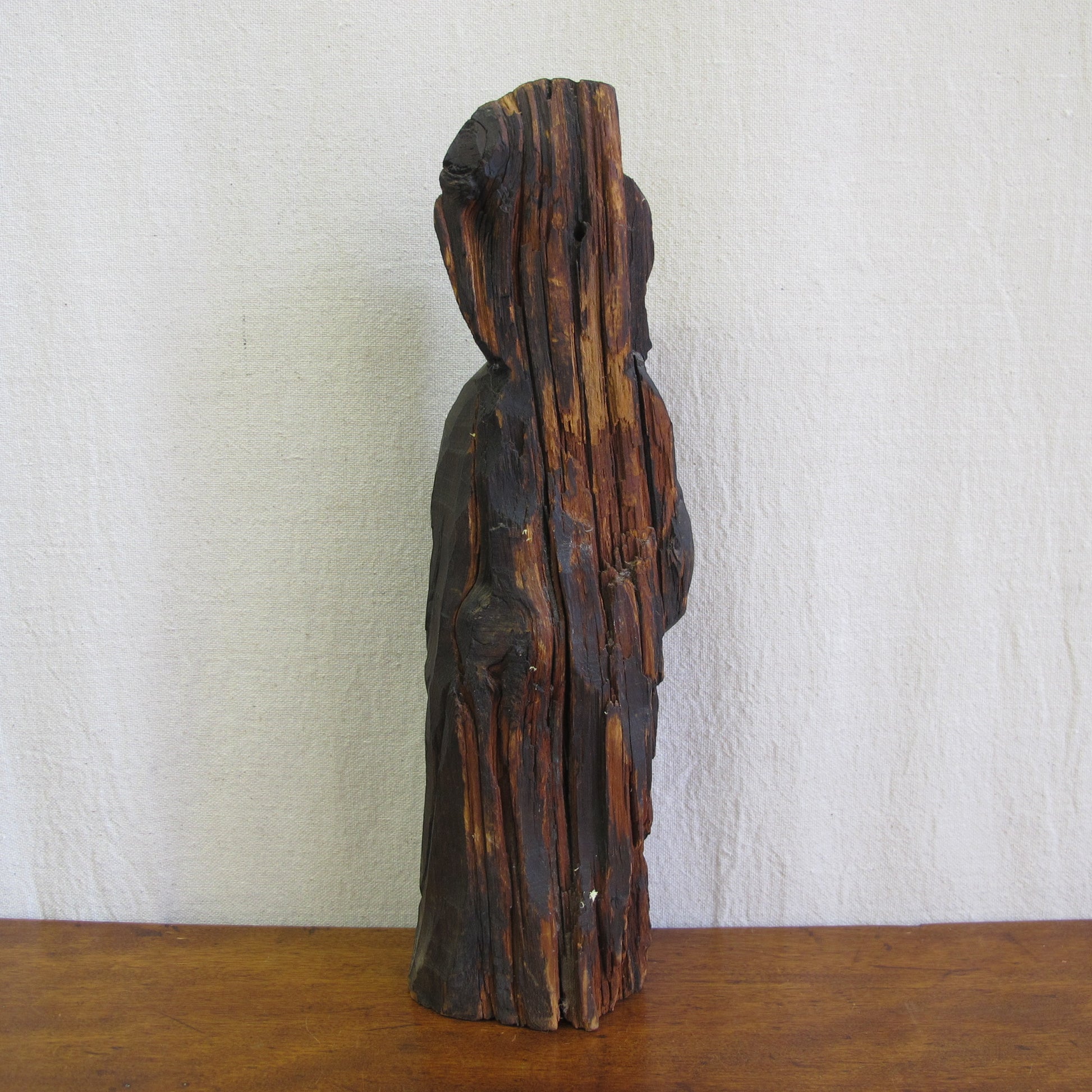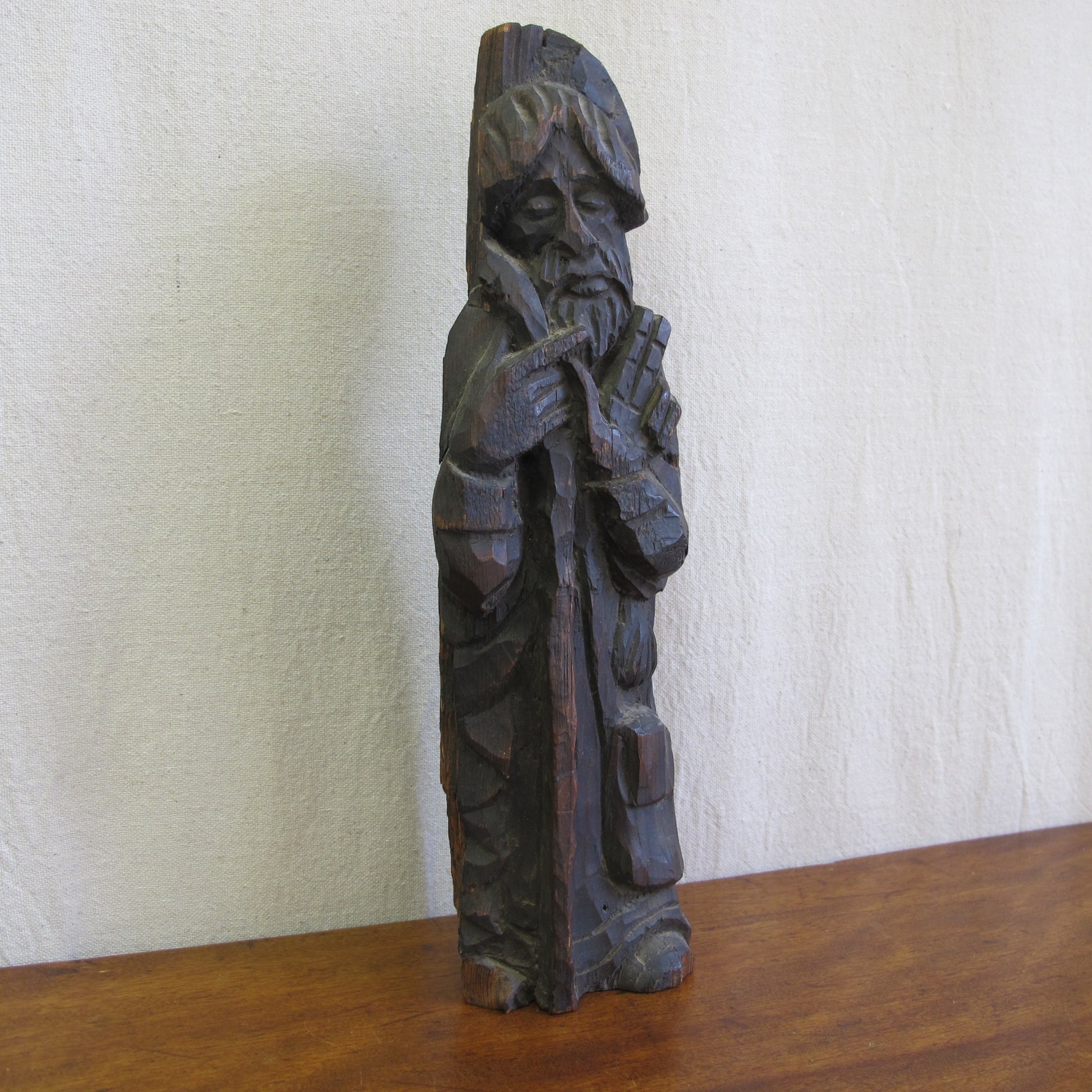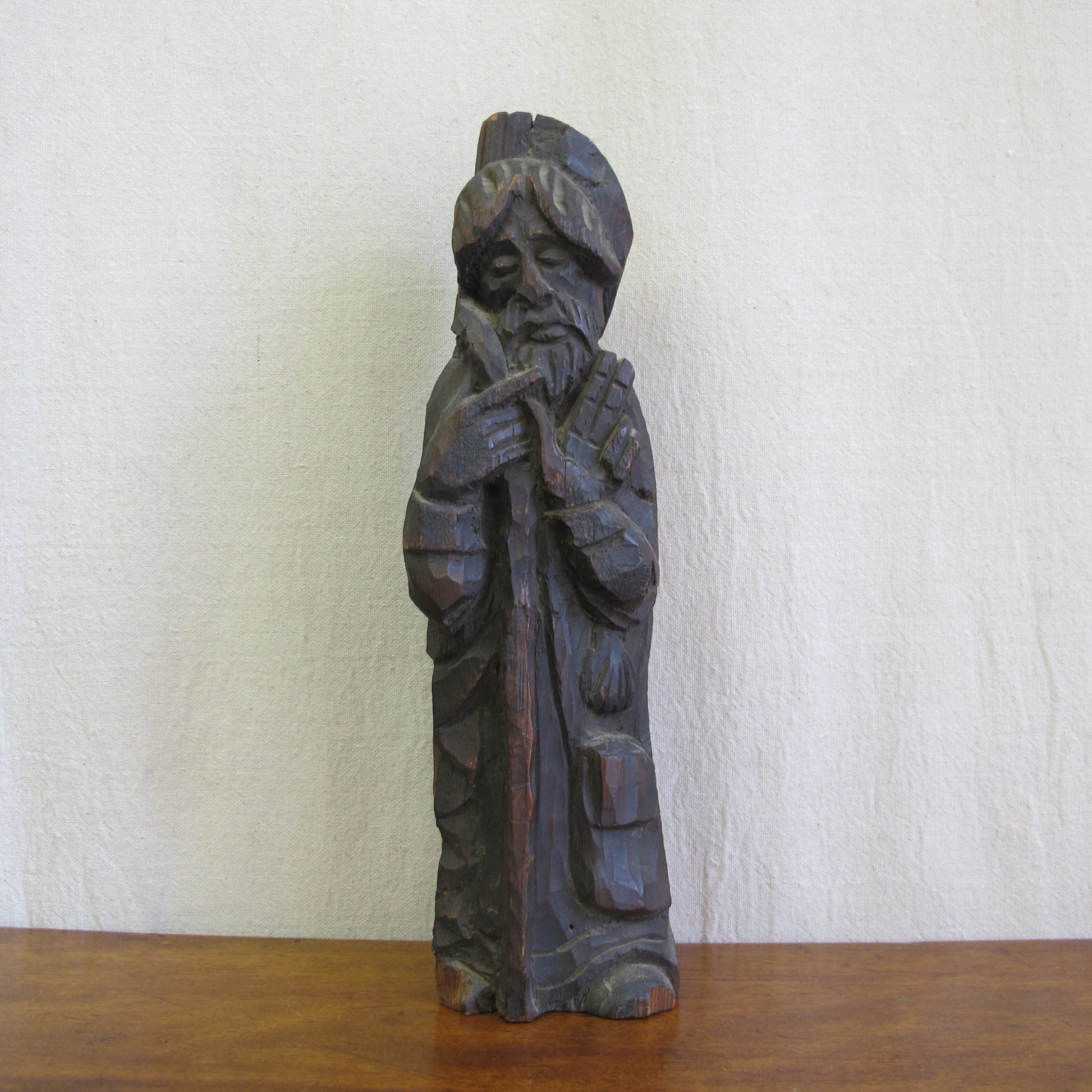 Rustic santos in desert wood, possibly some sort of very dense and heavy cedar, depicting St. James with his scallop shell, of unknown age. I suspect American Southwest desert as the origin.
