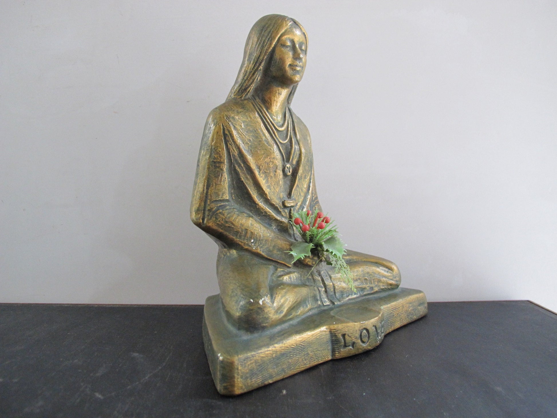 Sculpture Jostens Hippy Buddha Pose Love 1960s 1970s Plaster Bronze Resin