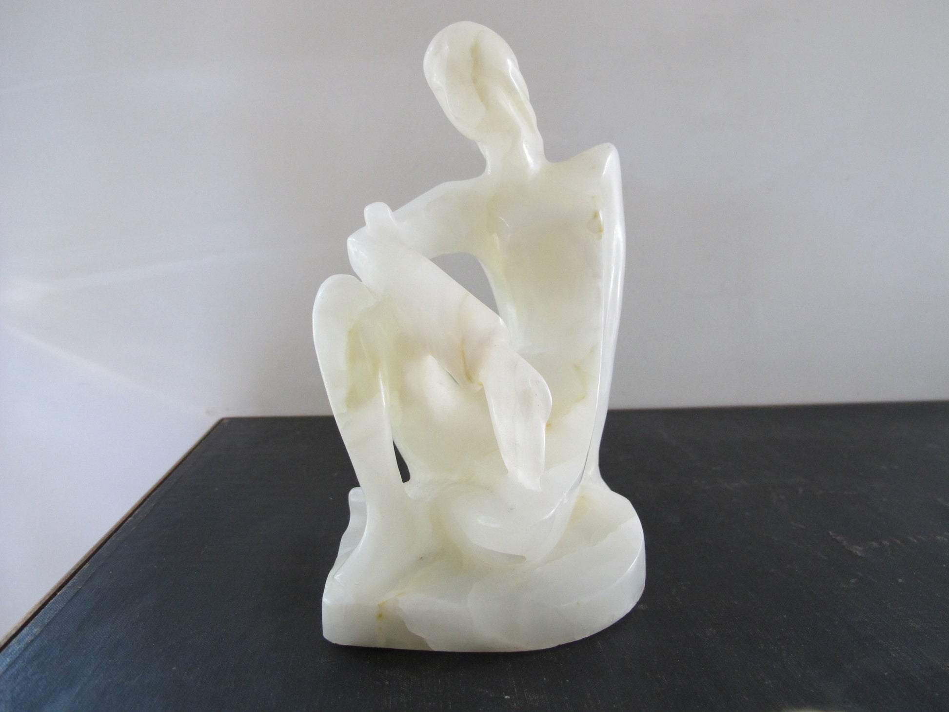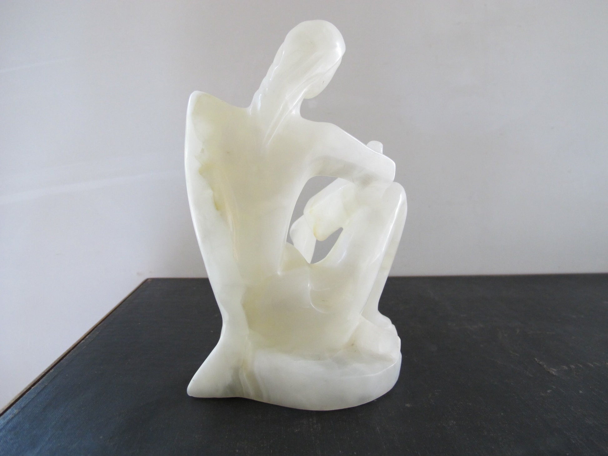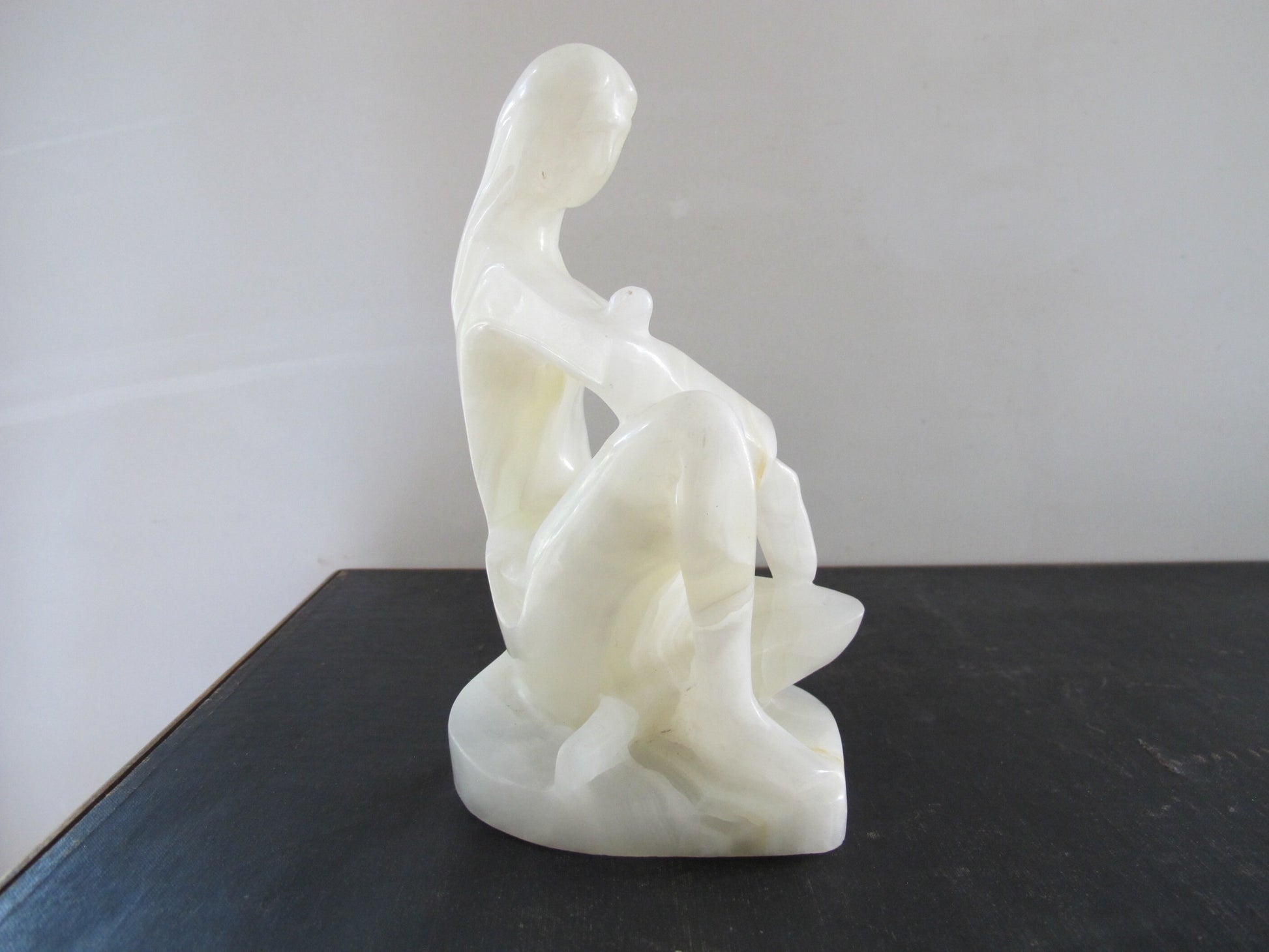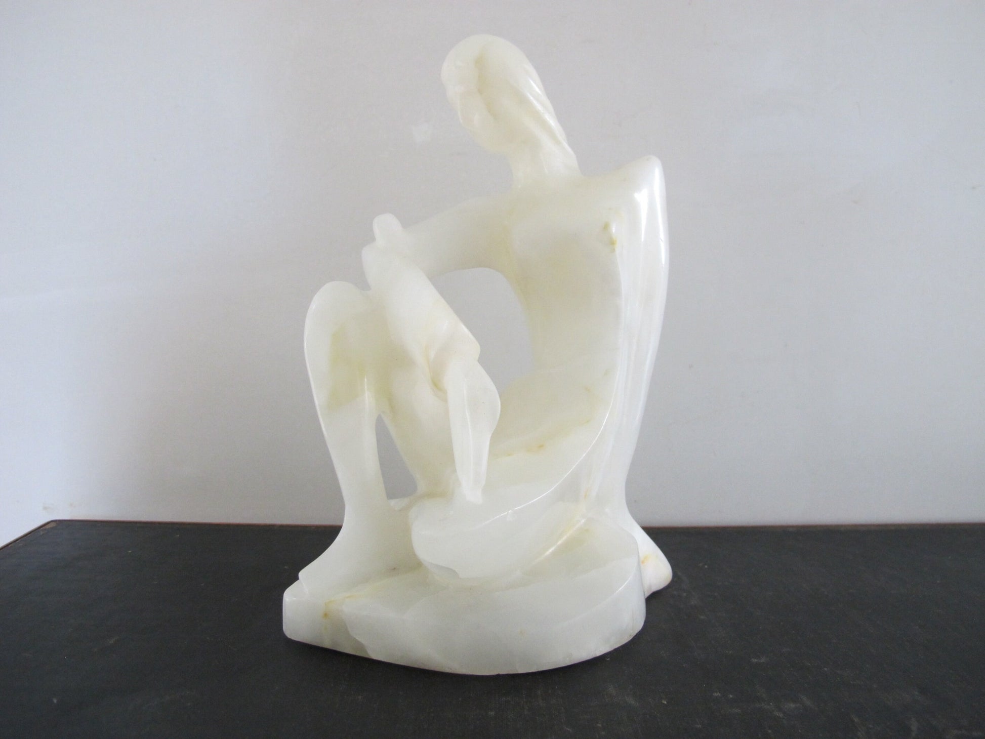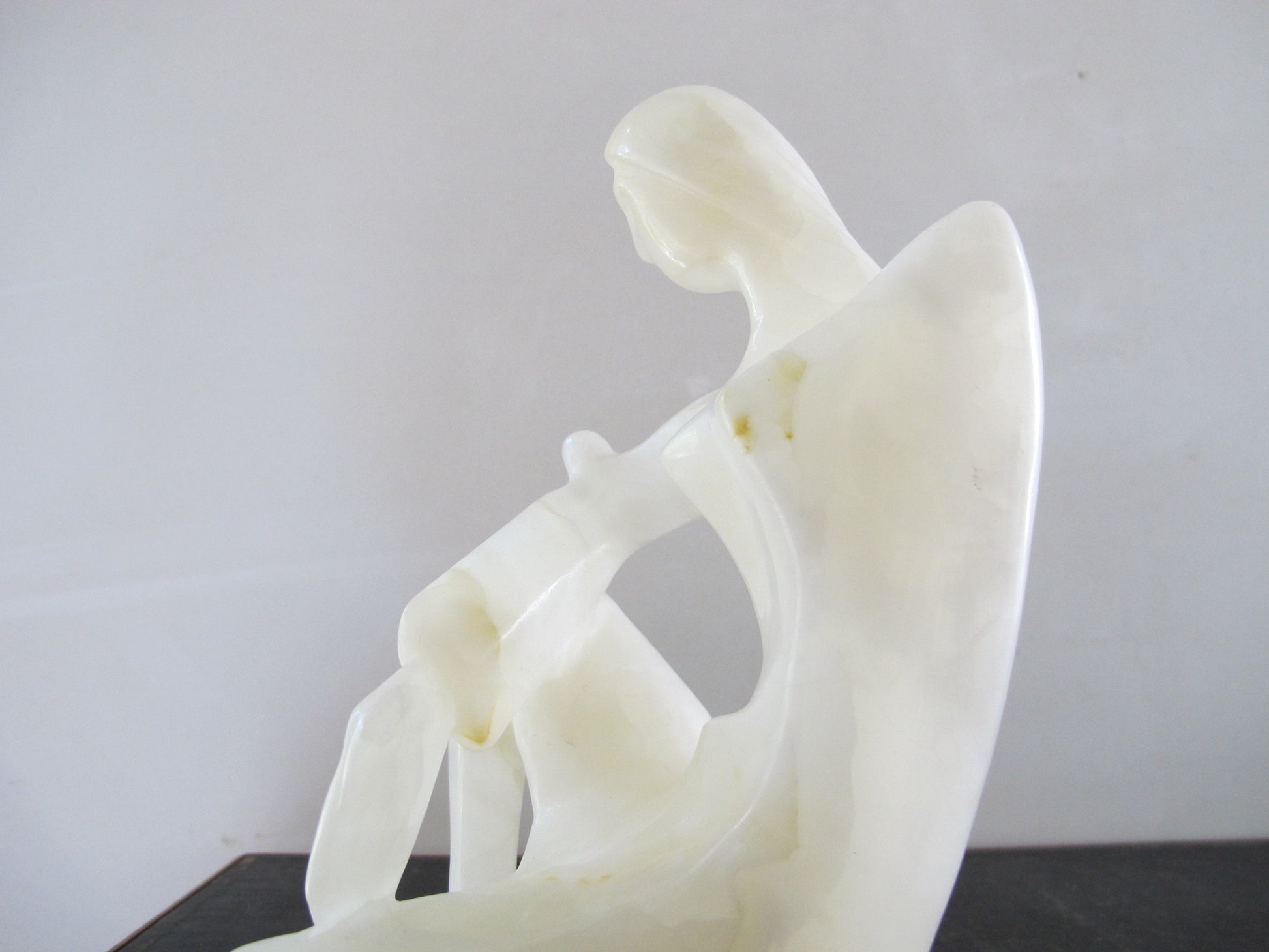 Sculpture Translucent White Alabaster Marble MCM Midcentury Italian Woman Abstract 1950s 1960s