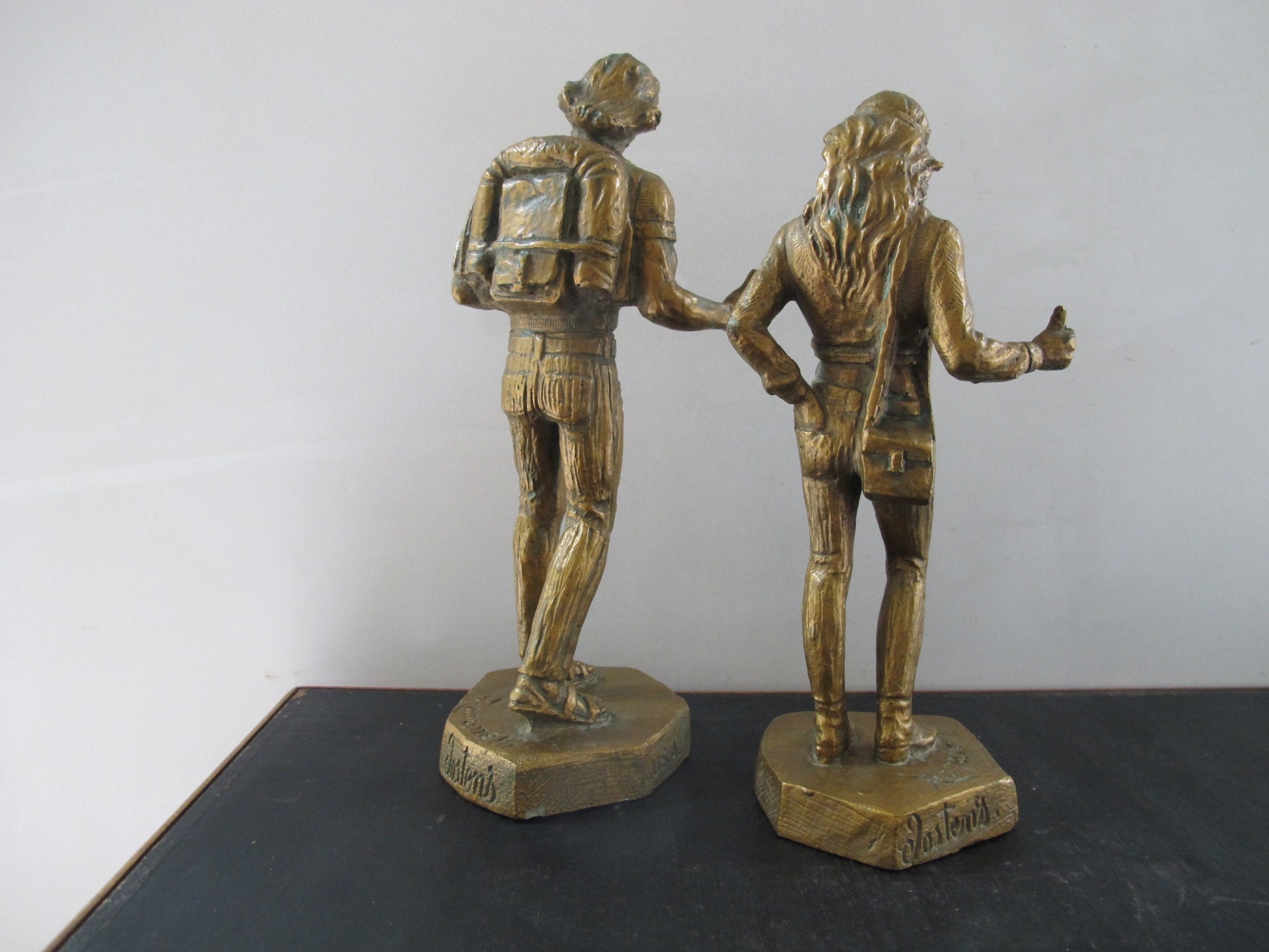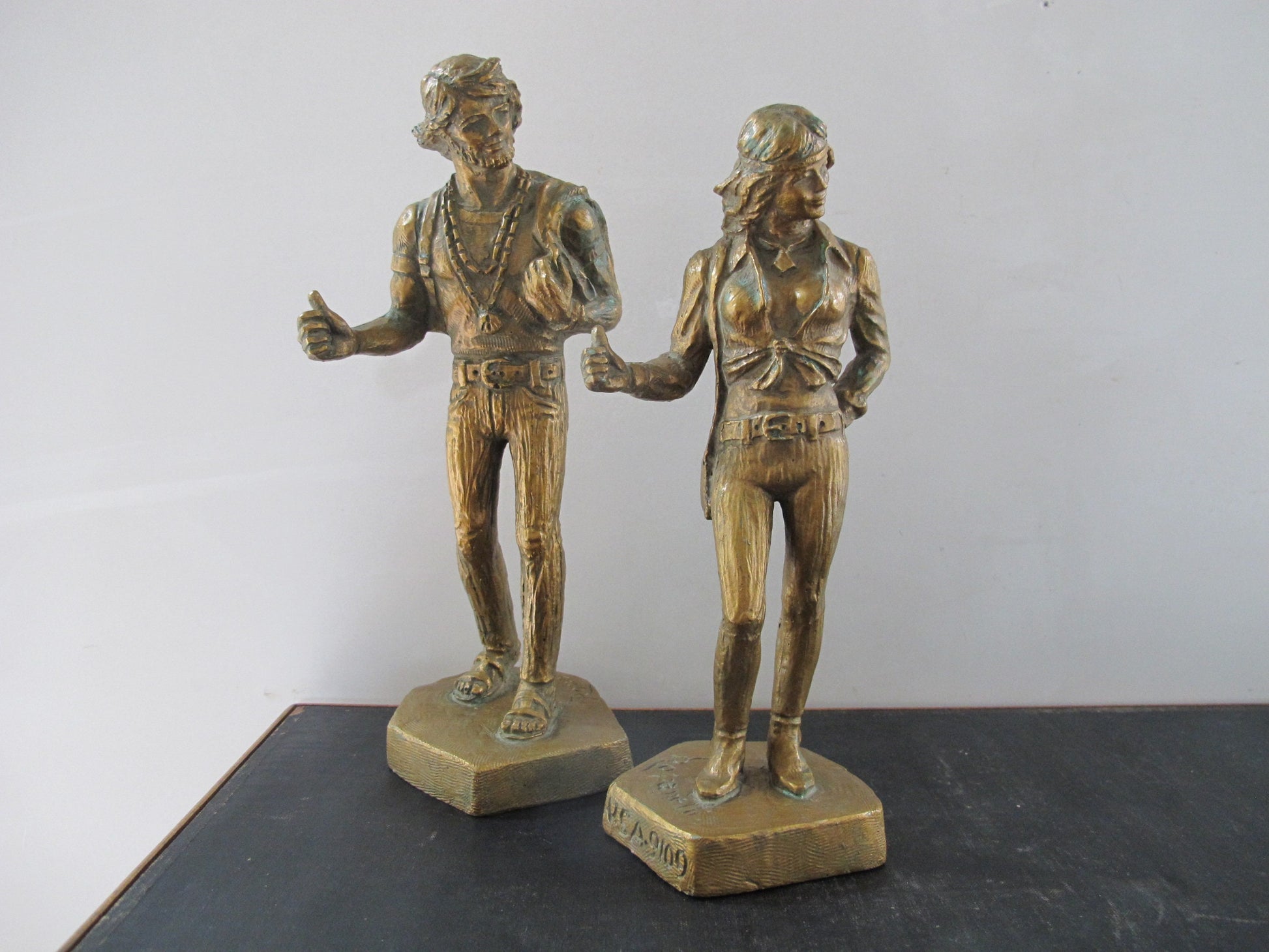 Sculptures Hitchikers Man and Woman Romanelli Jostens USA 9108 9109 Bronze Resin 1960s 1970s