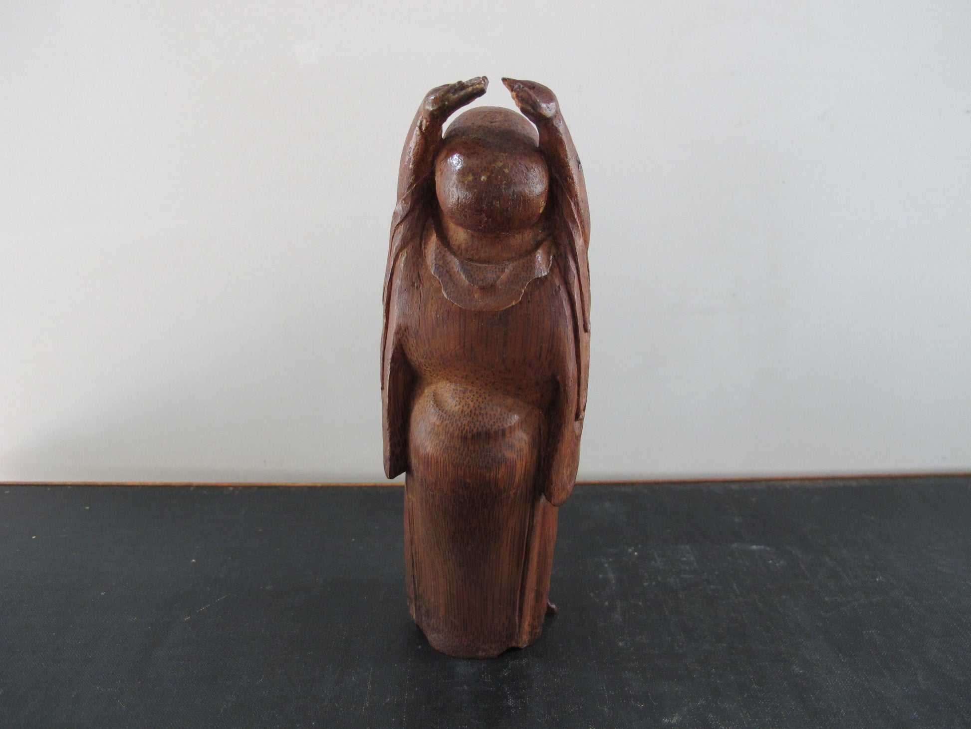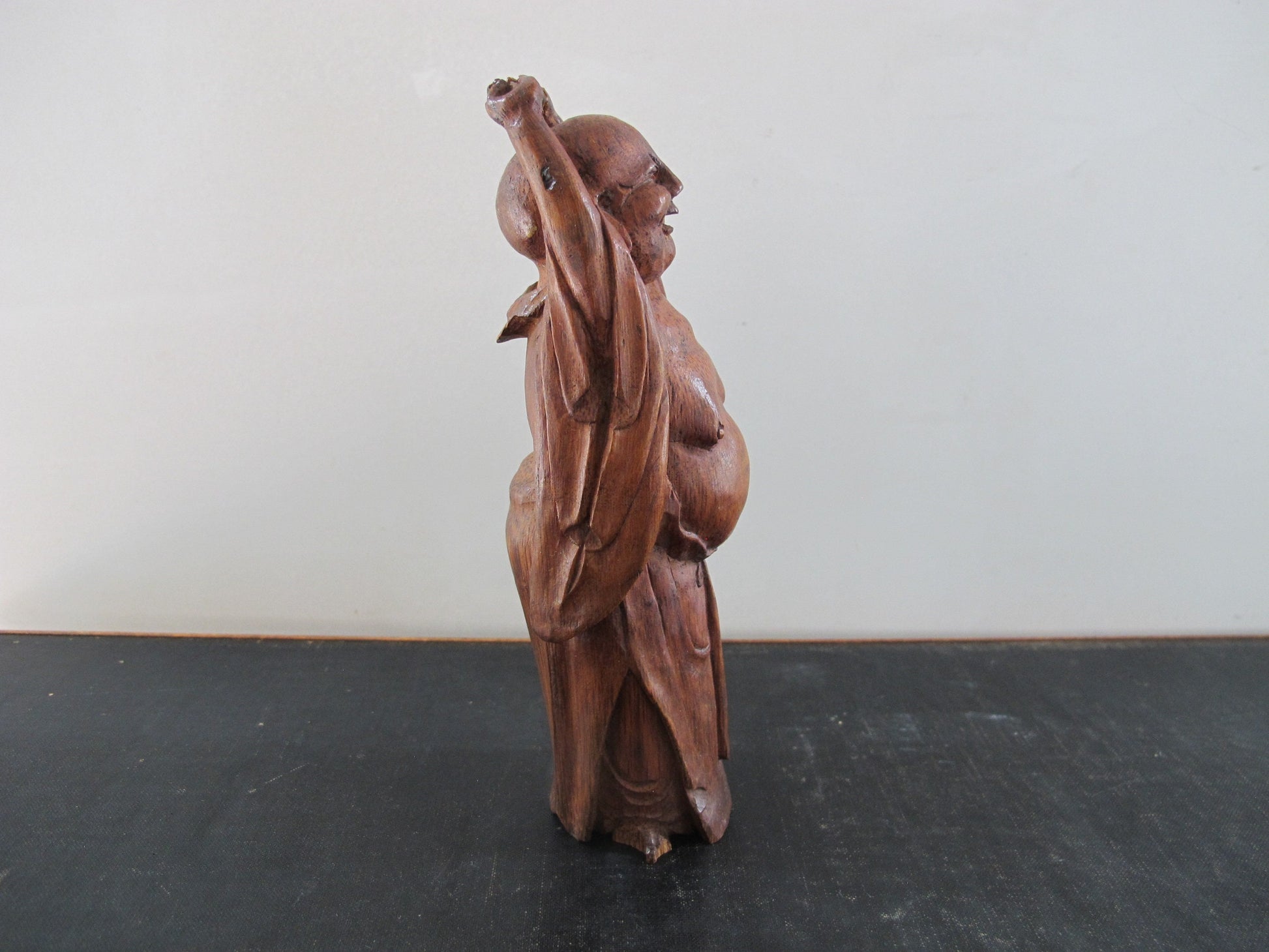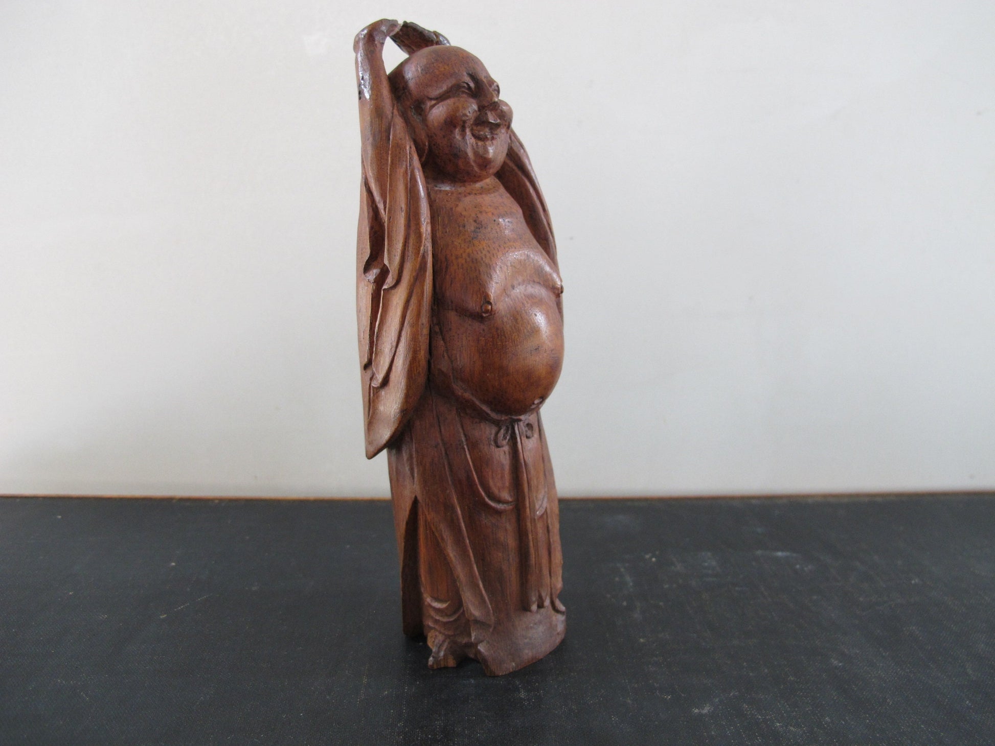 Smiling Buddha Stretching Chinese Carved Bamboo Antique 1920s 1930s Statue Figure Figurine