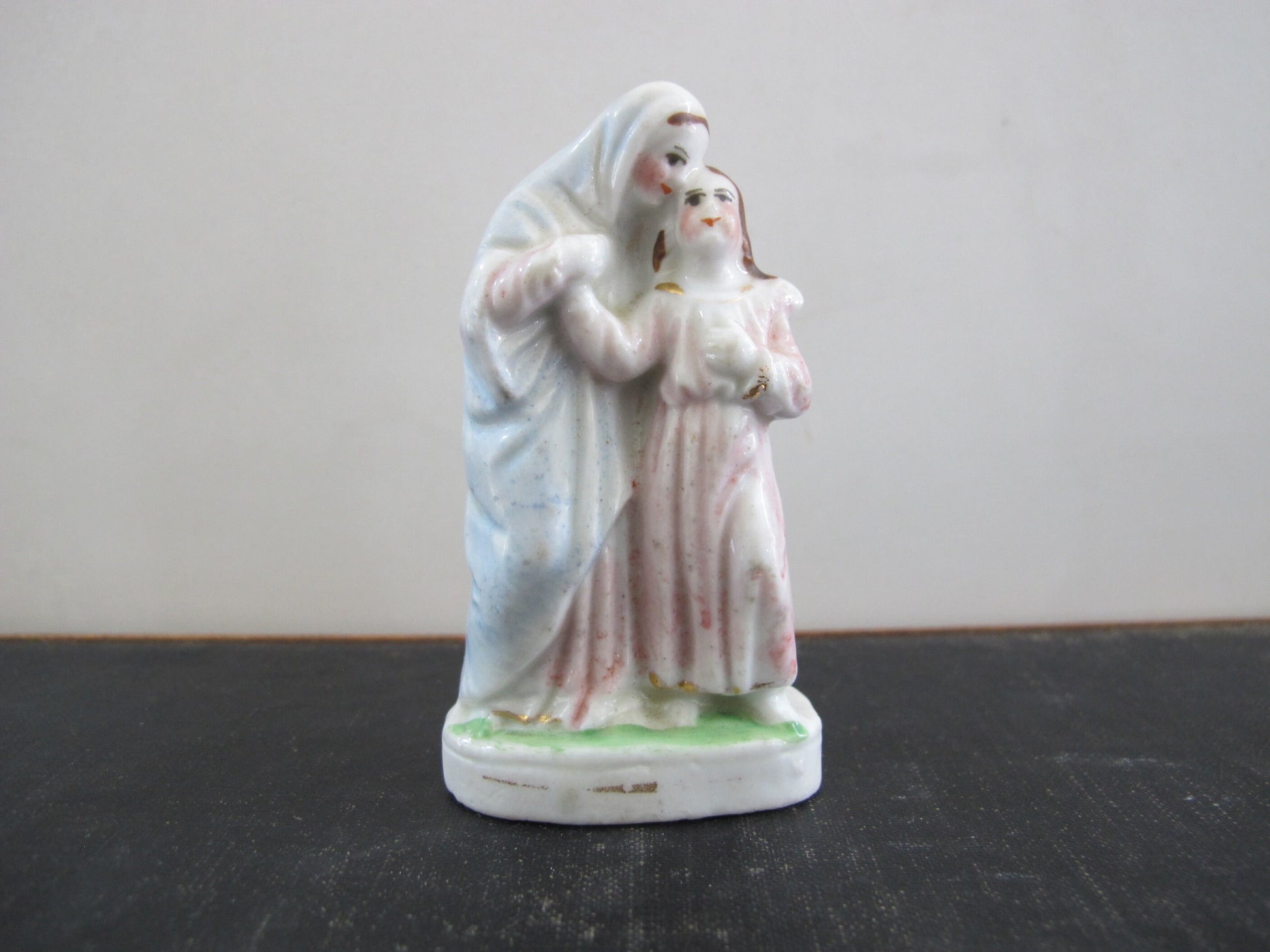 St. Anne Bisque Porcelain 1850s 1860s Miniature Victorian Devotional Object Catholic Christian Antique