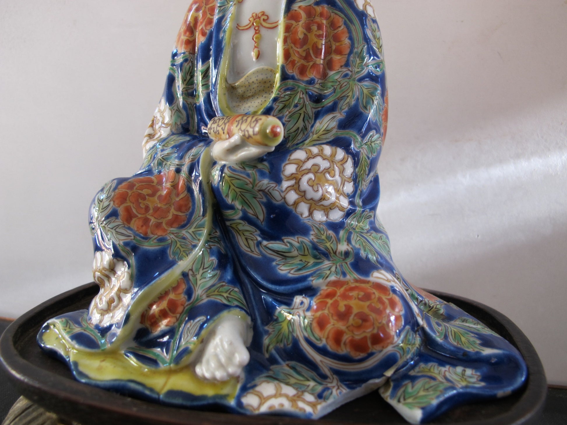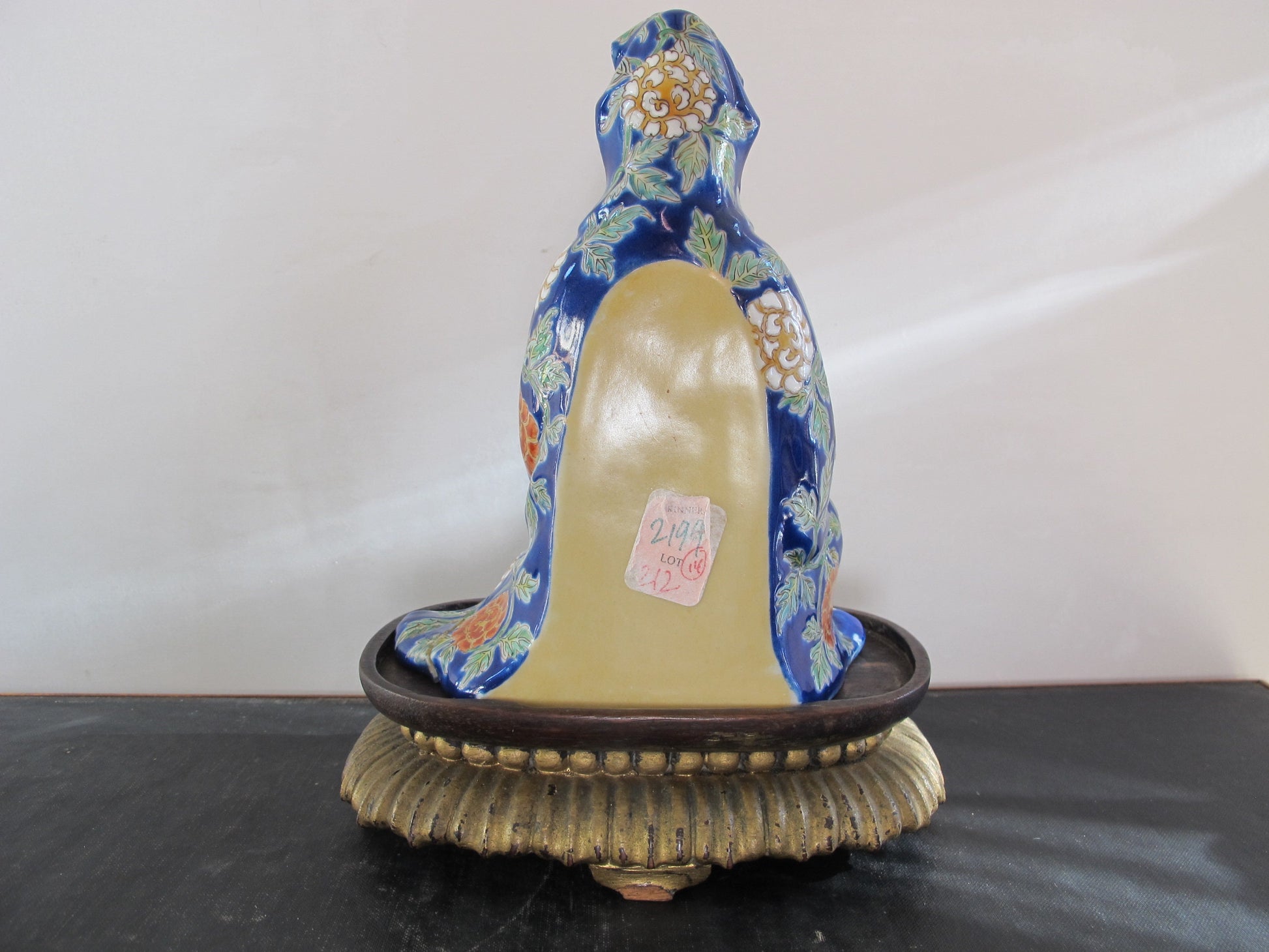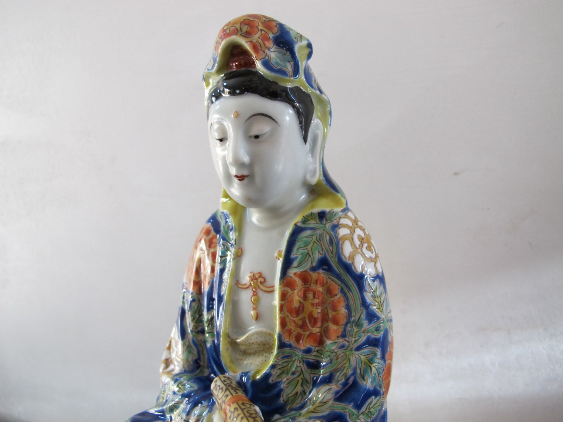 Statuette Guanyin Famille Bleu Chinese Polychrome Buddhist Bodhisattva Porcelain c. 1900 on Lotus Stand Skinner Auctions Tag