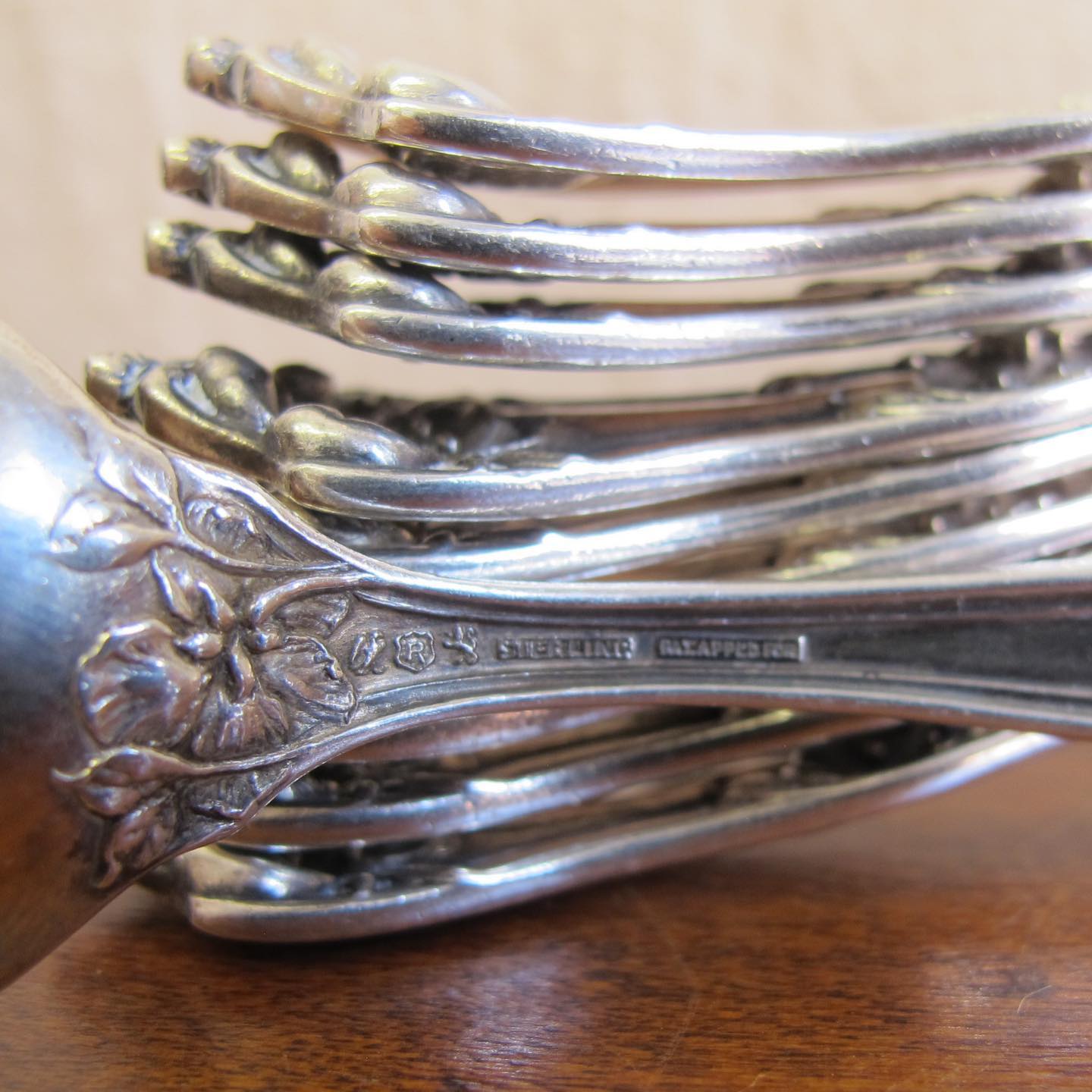 Ten Art Nouveau sterling silver Reed & Barton teaspoons, c. 1900, ‘Poppies’ pattern or possibly the ‘Les 5 Fleurs'