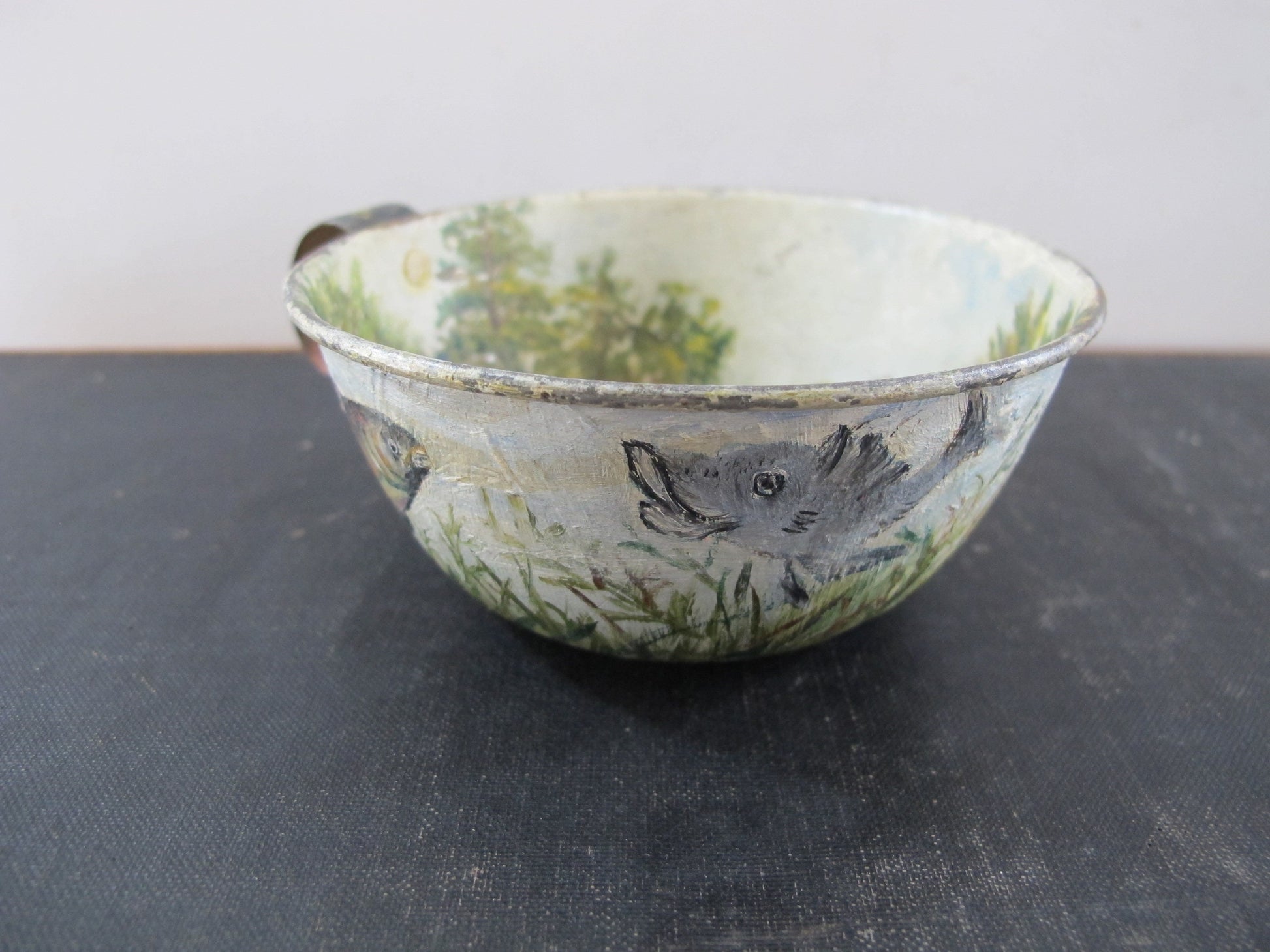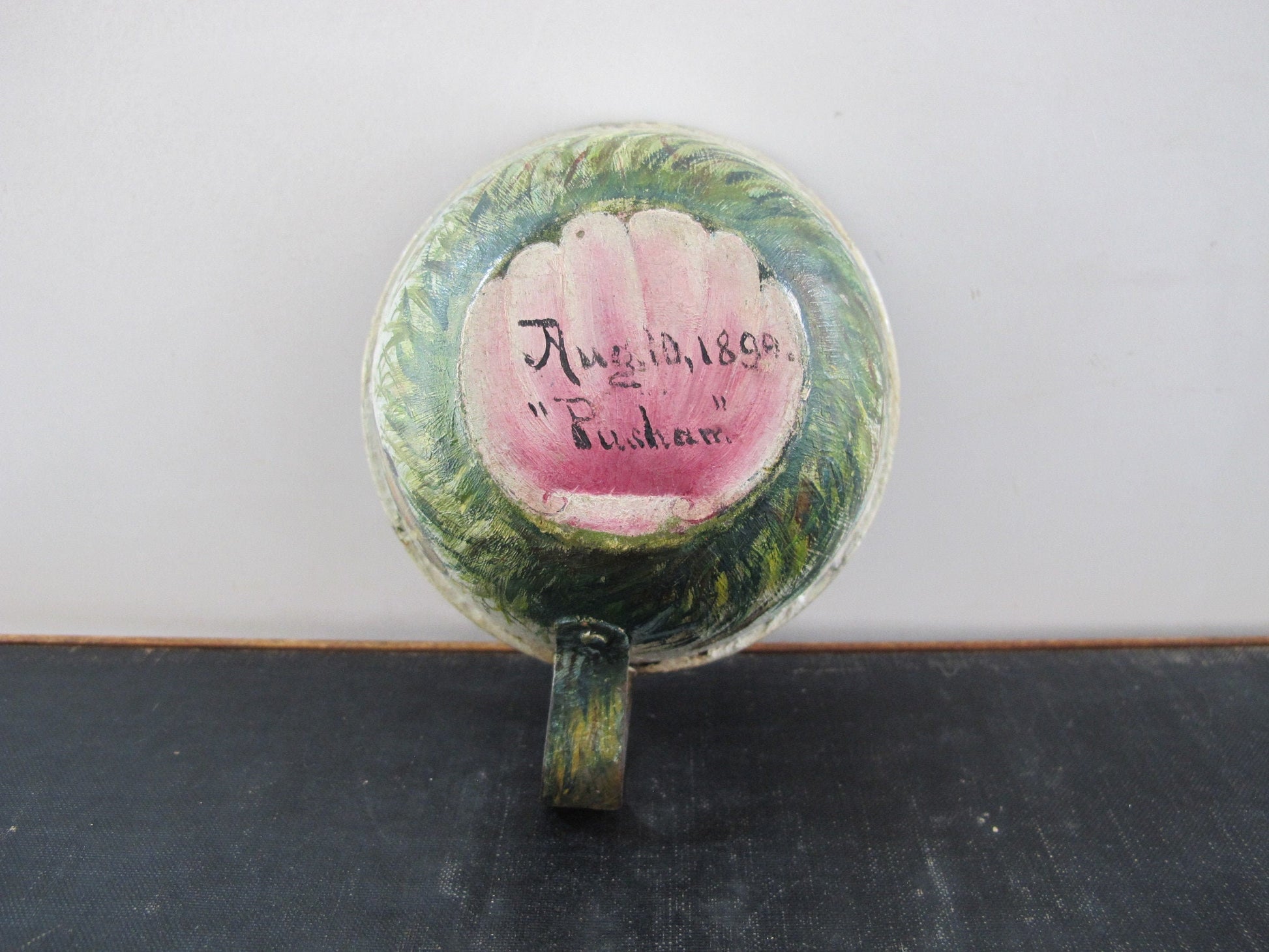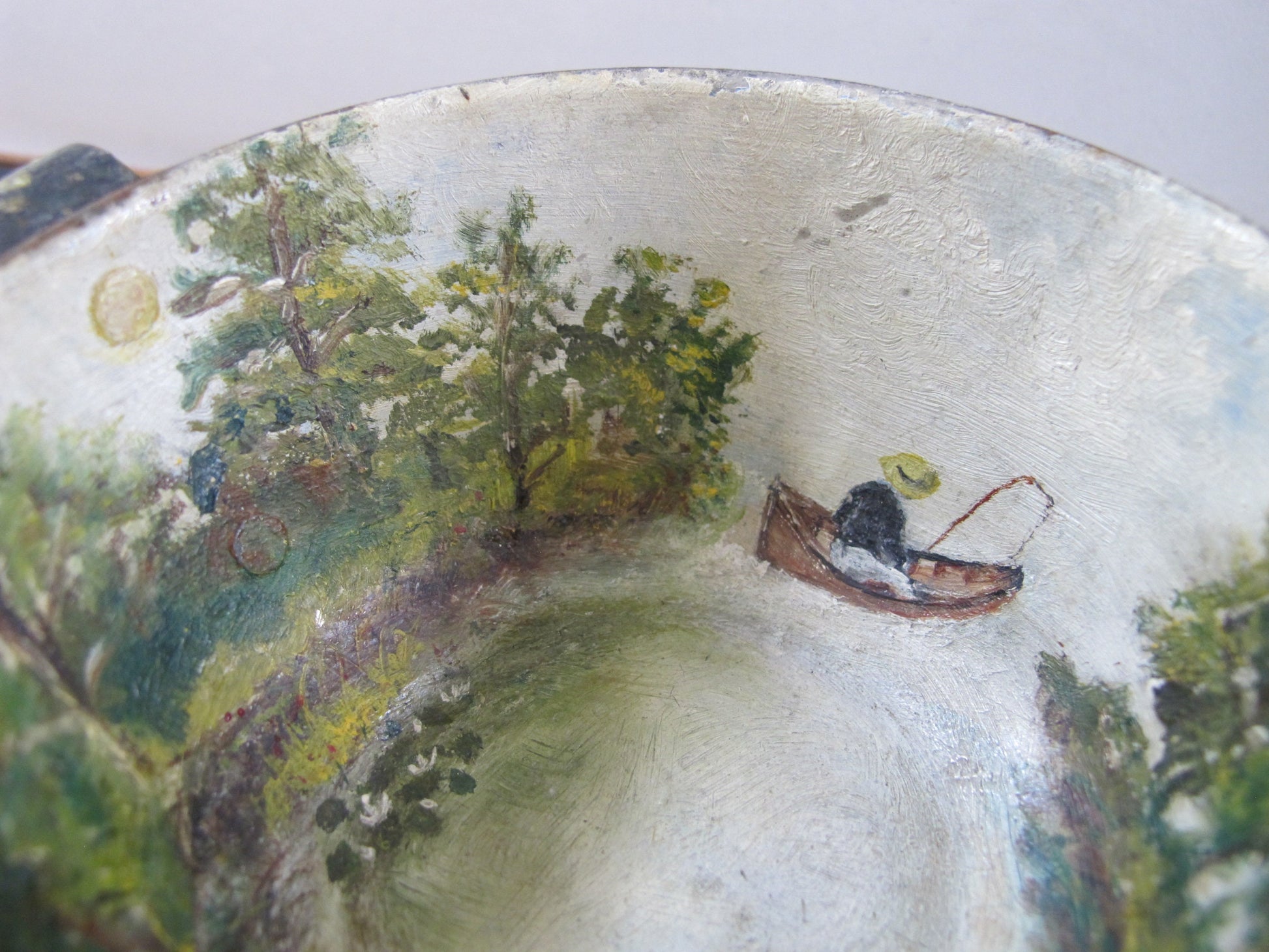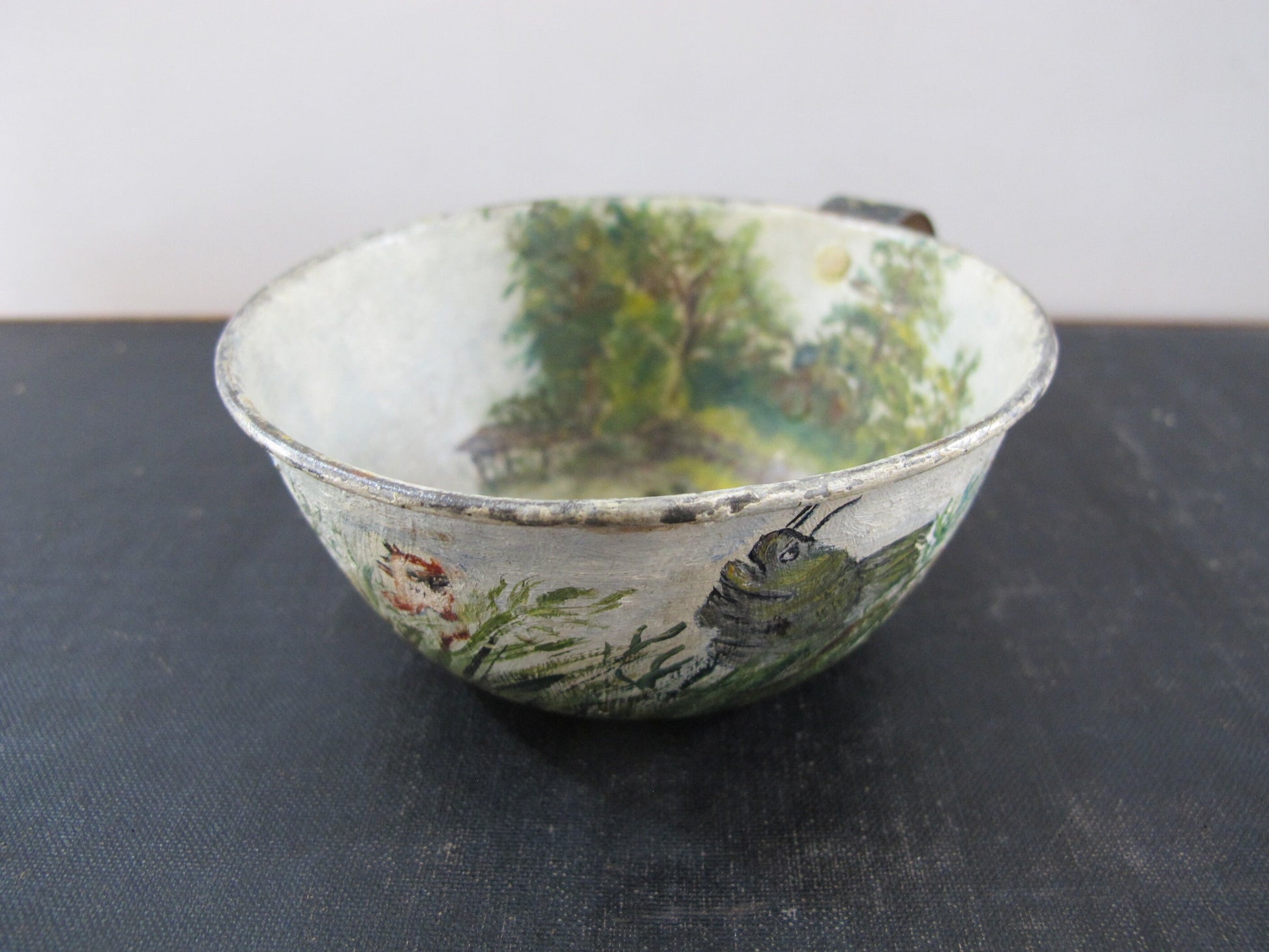 Tole Fishing Teacup Signed Dated 1890s Naive American Folk Art